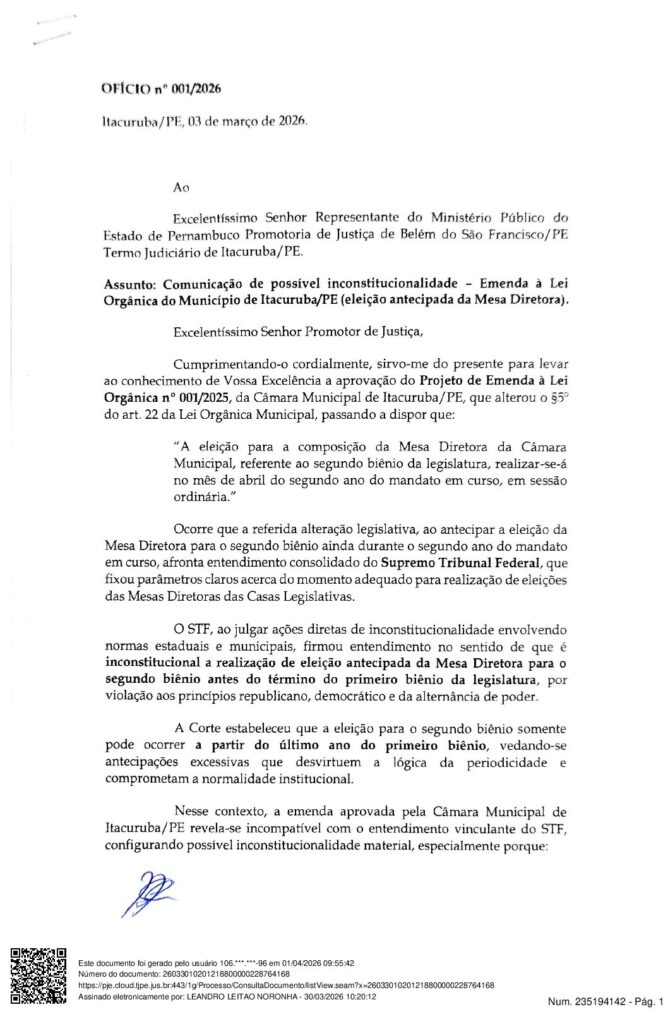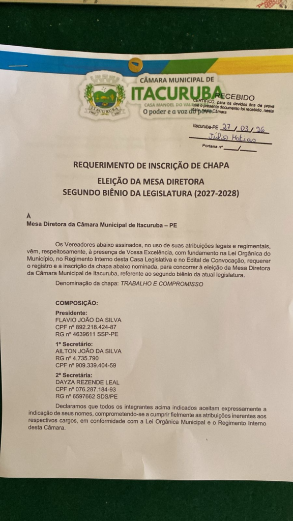 O cenário político do município de Itacuruba entrou em ebulição após a eleição da Mesa Diretora da Câmara Municipal ganhar contornos judiciais e expor uma divisão interna que, até então, era mantida nos bastidores.